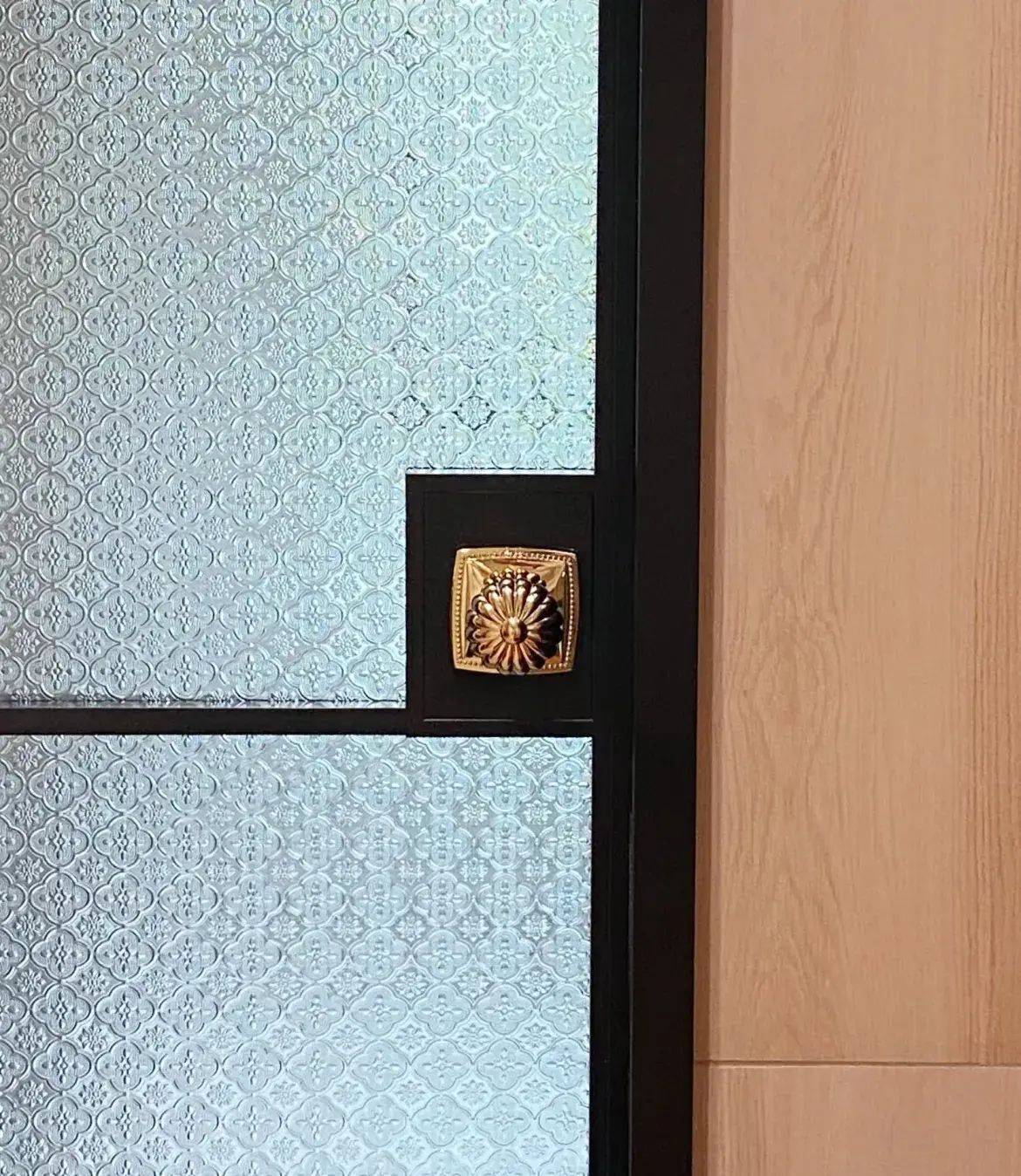 而且,为了维持它的美,仔细看,它上面是没有门锁的,至少外面看没有锁,因为锁藏在里面。