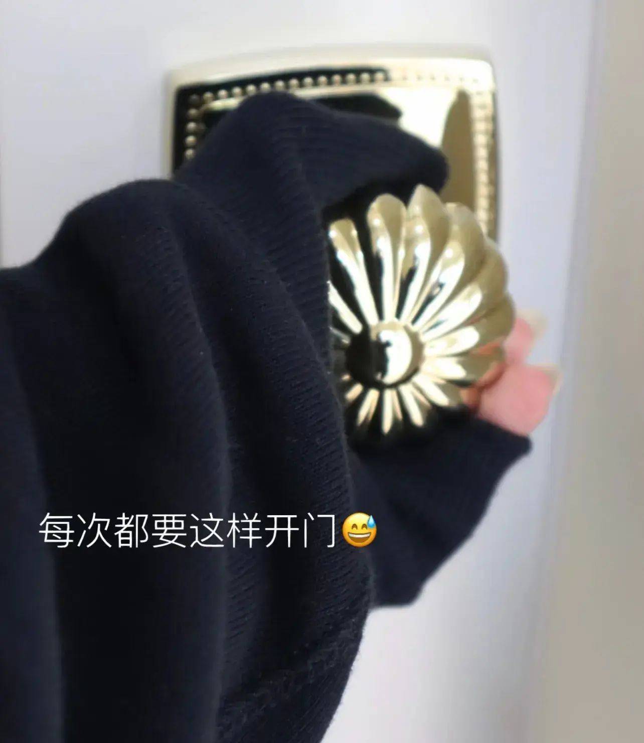 通常情况下,拧门如上图,得垫着个袖子,夏天没袖子时就得拉衣襟,老人小孩就更别说了,我那小外甥因为一个南瓜锁,独立上厕所的技能都消失了。