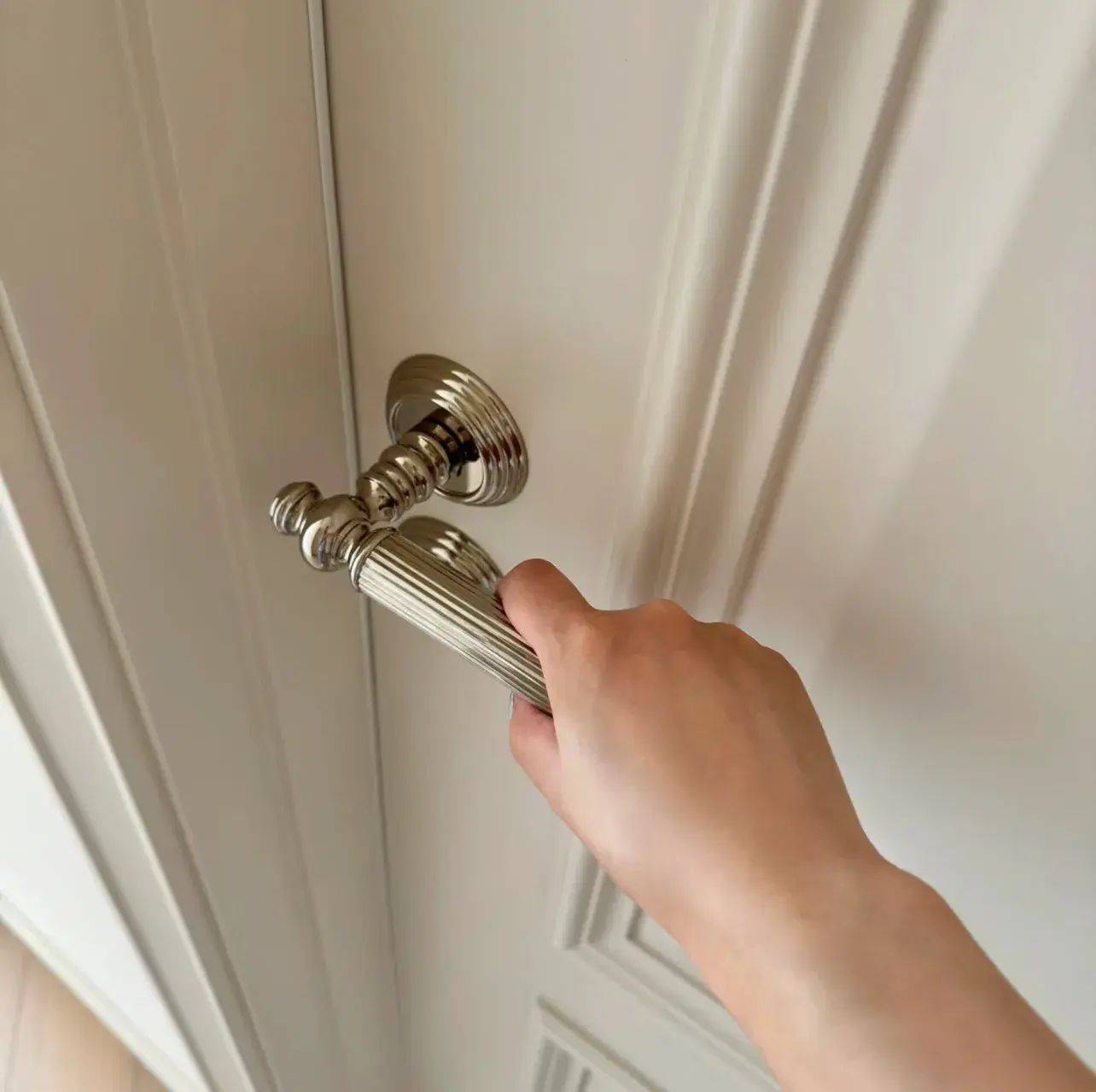 ①镀铬表面+鹅卵石形状,闪亮亮、圆润润,精致又有质感,往门上一装,不管是法式复古还是极简风格,都能驾驭得住;